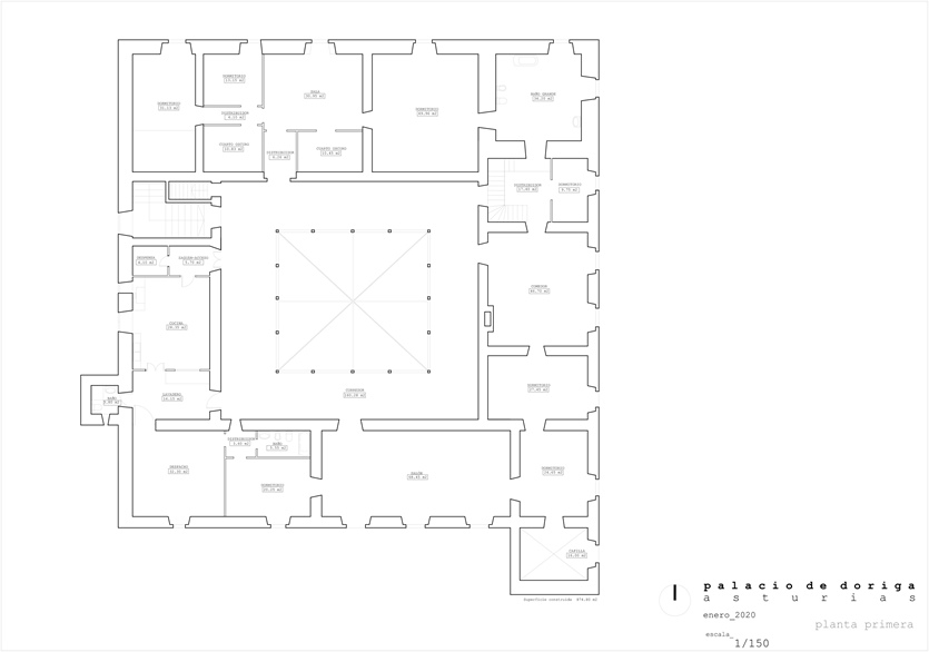 En total, el palacio tiene 1.892 m2 y 3.136 m2 si se incluye el patio. El gran edificio auxiliar (para reforma integral) denominado La Casina, cuenta con 266 m2 en dos plantas y es obra del prestigioso arquitecto Luis Bellido.